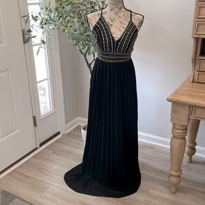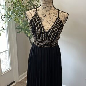 Lulu’s “Glamorous Gala” Maxi Dress Embroidered Beaded Bodice Crisscross Back