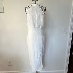 Lulus Glamorous Promise White Organza Halter Bodycon Midi Dress