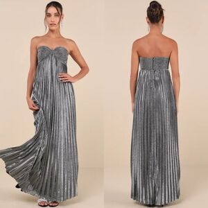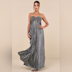 Lulus Glittering Luxury Silver Lurex Pleated Strapless Maxi Dress Wedding Prom. New without tags. See all pictures for details.