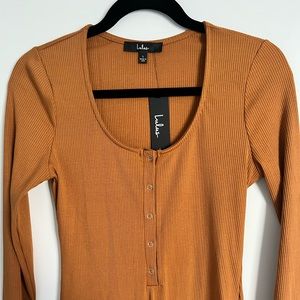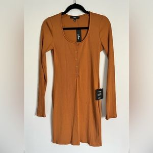 Lulus Go Beyond Basic Rust Brown Ribbed Snap Front Bodycon Mini Dress