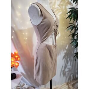 Lulus Go With You Ribbed Ruched Cutout Bodycon Mini Dress Womens Size XL Beige Tan