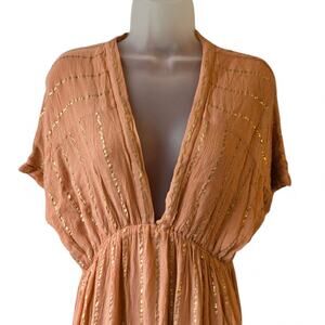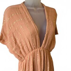 Lulus Goddess Vibes Rusty Rose Gold Striped Dolman Sleeve Maxi Dress Ethereal L