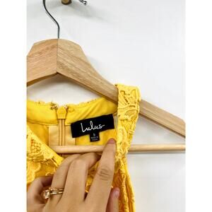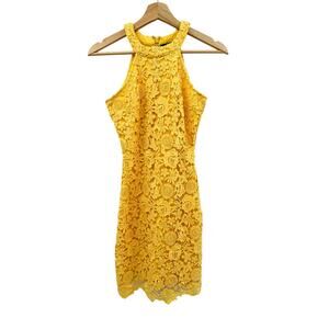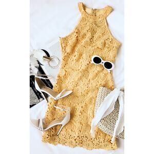 Lulu's Golden yellow Lace High Neck Mini Dress