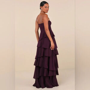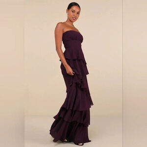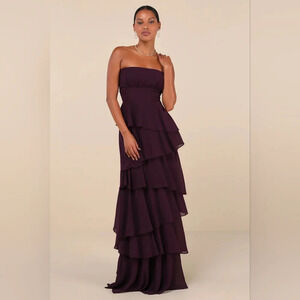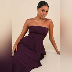 Lulus Gorgeous Essence Dark Purple Strapless Tiered Maxi Dress Wedding Party NWOT. See all pictures for details.