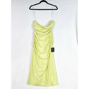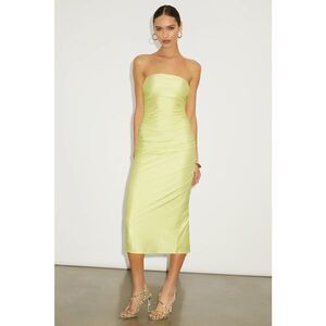 Lulus Gorgeous Reputation Lime Green Strapless Ruched Midi Dress Size L NWT