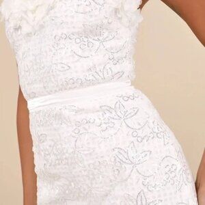 Lulu's Gorgeous Wonder White 3D Floral Applique Strapless Mini Dress Sz Sm NWT
