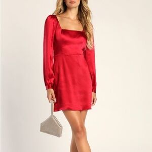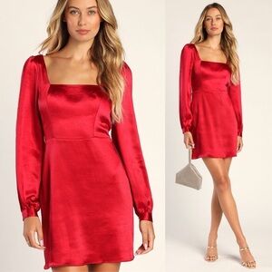 Lulus Got The Love Red Satin Square-Neck Mini Dress Size XL