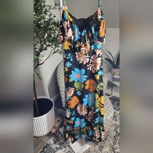 Lulus Got the Flower Black Floral Ruffled Cold-Shoulder Maxi Dress Small