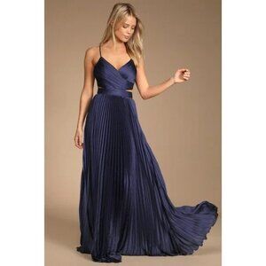 Lulus Got the Glam Navy Blue Pleated Cutout Maxi Dress Size Medium NEW