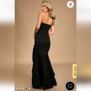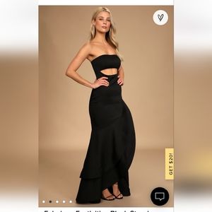 Really nice black ruffles hem gown by Lulu's. Is strapless with peekaboo waist .Has back sipper. size L (sold out online) nwot.