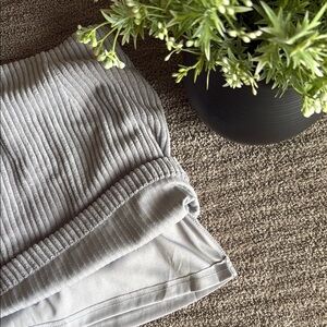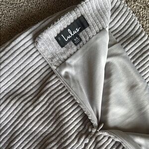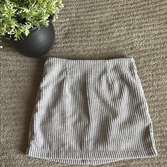 Stylish gray ribbed skirt perfect for any occasion. Comfortable and chic, this skirt is a must-have addition to your wardrobe. Double-lined for extra comfort!