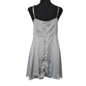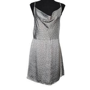 ⭐️Lulu's Gray Silver Polka Dot Spot in My Heart Satin Cowl Neck Mini Dress Sz XL