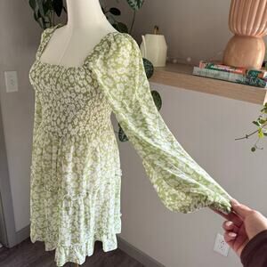 Lulus Green Floral Smocked Tiered Long Sleeve Mini Dress M Coquette Cottage