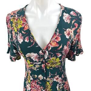 Lulus Green Multicolor Floral Deep V Neck Short Sleeve A Line Mini Dress Size XS
