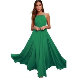 Lightweight Georgette forms a fitted bodice with princess seams and an apron neckline supported by adjustable spaghetti straps that crisscross atop a sultry open back.
