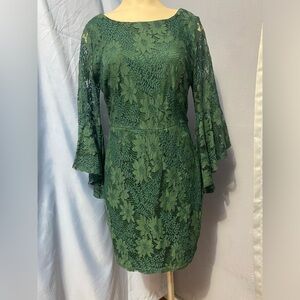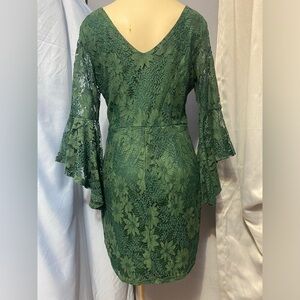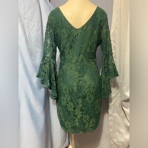 Lulu's Green Sheath Dress with 3/4 Bell Sleeves