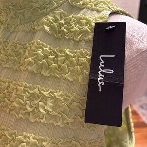 Cool, comfortable and sexy, this is a great dress. It gaps in places on the mannequin because the mannequin is a smaller size but it is form fitting and the fabric has a nice comfortable stretch to it. Buttons behind the neck and zips at the lower back. There is an 18" slit up the side of the leg and it is designed to hit below the knee. It is a new with tags, never worn dress that is clean and in excellent condition.