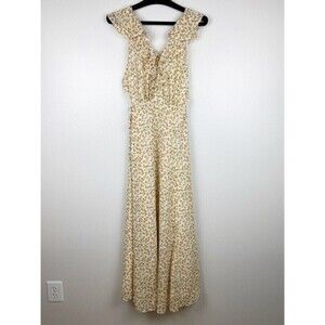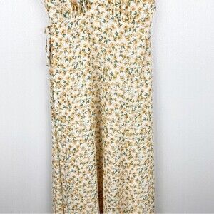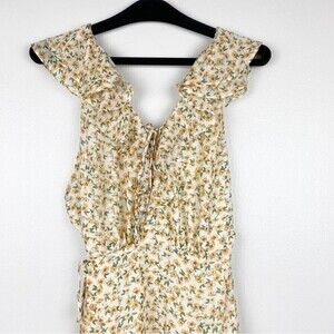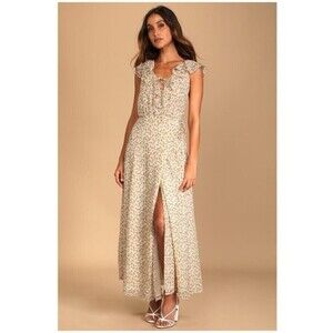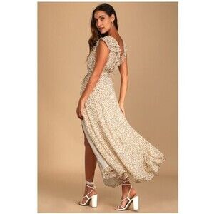 Lulu's Happiest Moments Ivory Floral Print Ruffled Lace-Up Wrap Dress Size M NWT