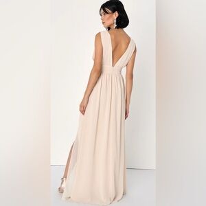 Lulus Heavenly Hues Blush Maxi Dress Plunging Neckline Size Medium