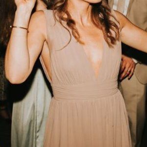 Poshed this gem and ready to pass it to a new home. Dress was hemmed by previous owner for 5’3 with a three inch heel in mind. This dress is form fitting and flattering. Nice deep V but not overly flashy. Didn’t need tape or anything.