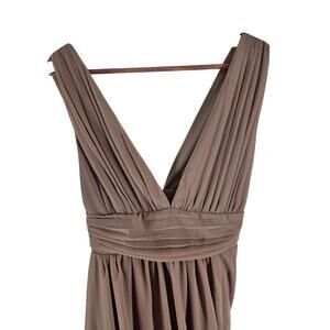 Lulus Heavenly Hues Taupe Sleeveless Plunge Neckline Chiffon Maxi Dress XS