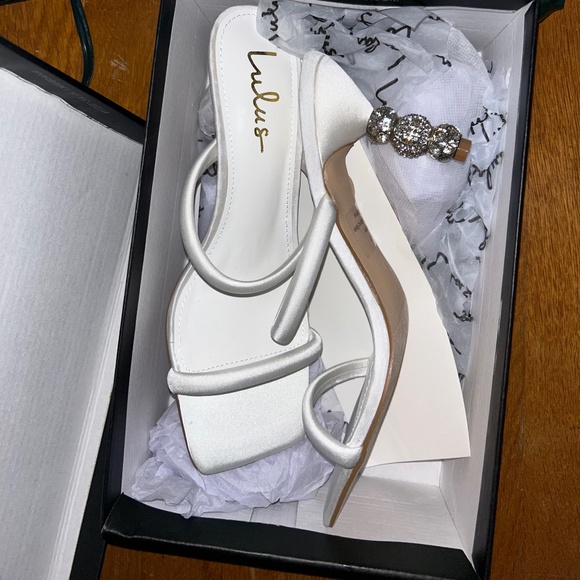 Size women's 7. Never worn! Lulus white heels.