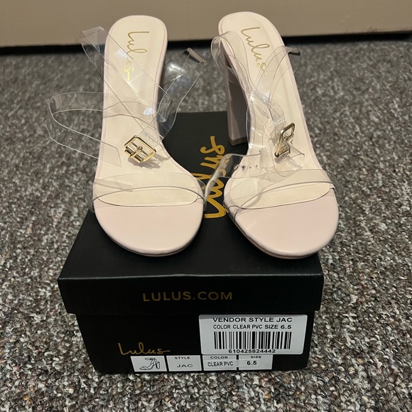 Lulu Heels, brand new, never worn. Size 6.5 Color/ nude Clear strap