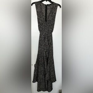 This chic sundress from Lulu's features a striking floral design with an asymmetrical high-low hemline. The sleeveless dress boasts a flattering wrap style with a tie front and a v-neckline, perfect for a cocktail night out.