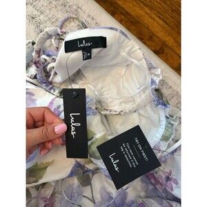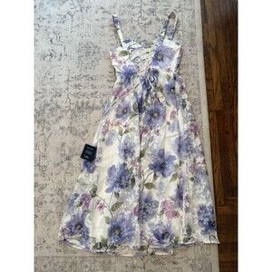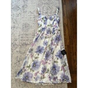 Lulus Hillela Ivory Floral Ruffled Lace-Up Midi Skater Dress Medium Whimsical