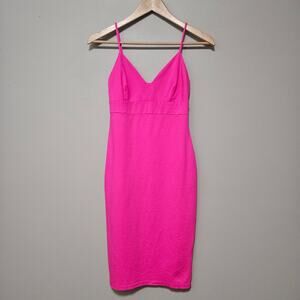 Lulus Hot Pink Bodycon Midi Dress Size Small Spaghetti Strap Party