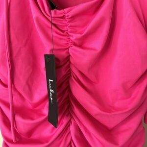 Lulu’s Hot Pink Long Sleeve Ruched Open Back Mini Dress