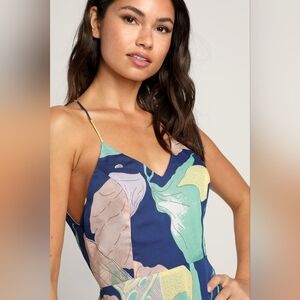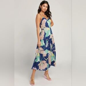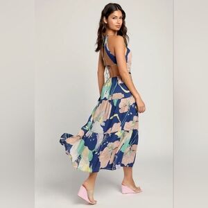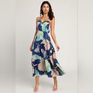 Lulus Hours of Flowers Blue Multi Floral Lace-Up Tiered Midi Dress S Party. New without tags. See all pictures for details. Currently SOLD OUT online.