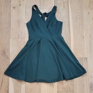 Lulu's Hunter green v neck skater dress size Large