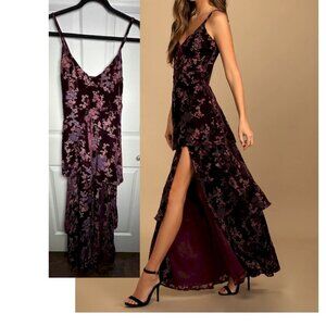 Lulus I Love You Amore Plum Purple Floral Velvet Tiered Maxi Dress Small NWOT