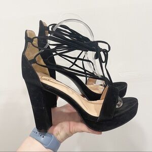 Lulu’s I Slay Black Vegan Suede Lace-Up Platform Heels