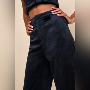 Lulus Icon Instinct Midnight Blue Velvet High Rise Trouser Pants - Size XS