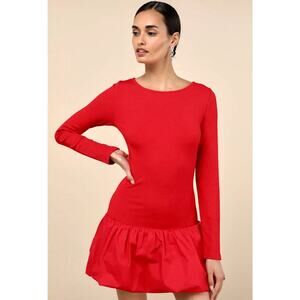 Lulu’s Ideal Approach Red Long Sleeve Mini Dress S