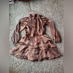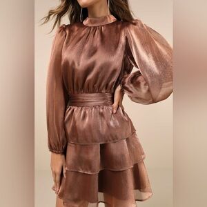 Lulus Ideal Behavior Bronze Metallic Backless Tiered Mini Dress