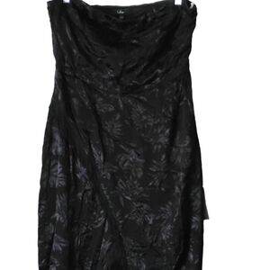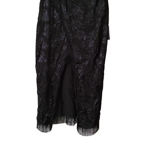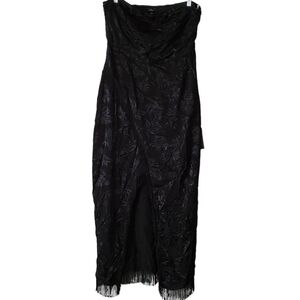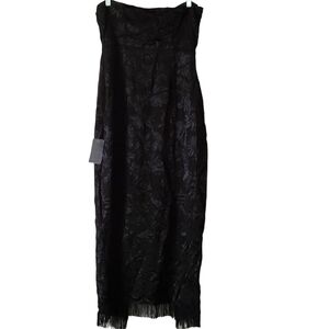 Lulus Ignite My Love Black Floral Embossed Strapless Fringe Midi Dress L