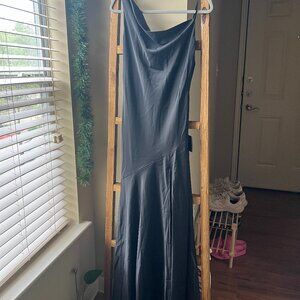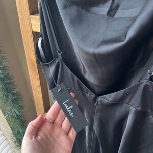 Lulus Impressive Energy Black Satin Asymmetrical Maxi Dress