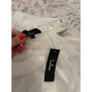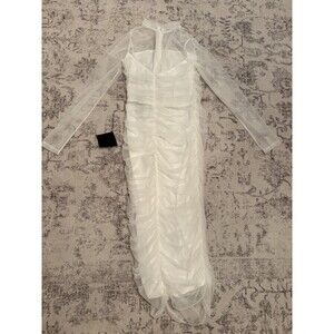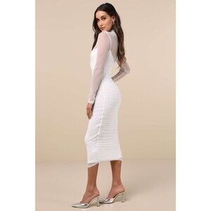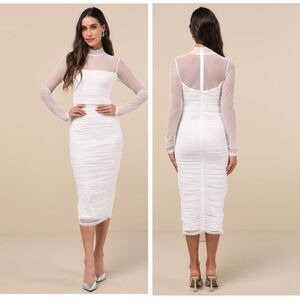 Lulus Impressive Flirt White Mesh Ruched Mock Neck Midi Dress Size Large Bridal