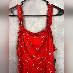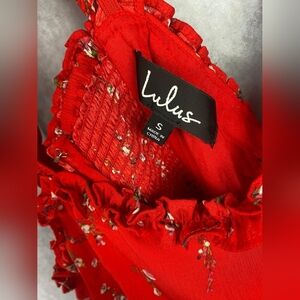 Lulus In the Garden Red Floral Print Skater mini Spring Dress Size S