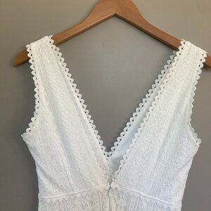 Lulu's Infinite Bliss Ivory Lace Sleeveless Backless Trumpet Maxi Dress, size small, brand new, never worn. I had it tailored to me, but went with another dress at the last minute. If you have my same measurements, you can skip the tailoring and just get this dress for a good deal already tailored! I'm 5'2" tall and my measurements are: 32 1/2 bust, 27 waist, 37 1/2 hips. I've included photos of the tailored version I am selling. It has a small train and a bustle clip, and I had the deep-V made a little less deep :) Here is the original link to the Lulu's dress before tailoring: https://www.lulus.com/products/infinite-bliss-ivory-lace-sleeveless-backless-trumpet-maxi-dress/2302411.html.