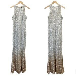 Lulus Infinite Dreams Ombre Sequin Trumpet Maxi Dress Gown Gold/Silver