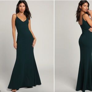 Lulus Infinite Glory Forest Green V-Neck Occasion Wedding Guest Maxi Dress