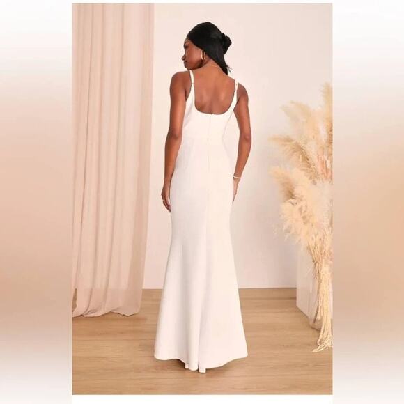 Lulus Infinite Glory Maxi Dress Evening Gown Womens Medium White Back Zip Adjustable Straps Party Event Holiday Wedding Rehearsal Bridal Dinner