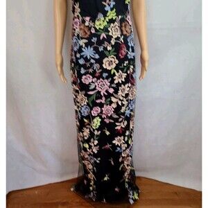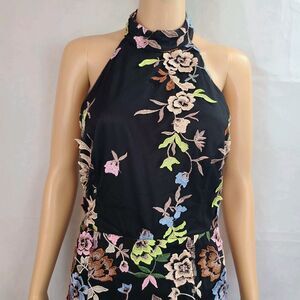 Lulus Infinite Praise Black 3D Floral Embroidered Halter Maxi Dress size L
