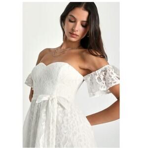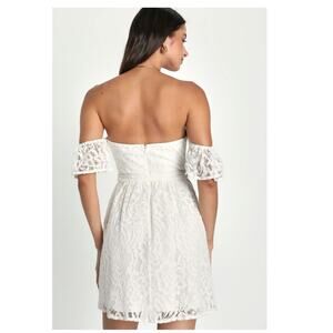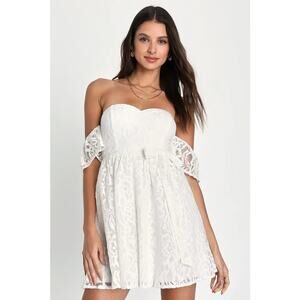Lulus Inspired Cutie White Lace Off Shoulder Mini Dress XS NWT Bridal Party