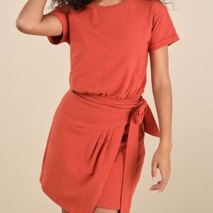 Lulus Ioana Rust Red Short Sleeve Pleated Faux-wrap Mini Dress - Size XS