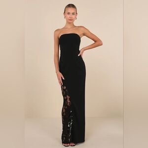 Lulus Irresistible Attitude Black Strapless Lace Column Maxi Dress L Wedding NWOT. See all pictures for details.